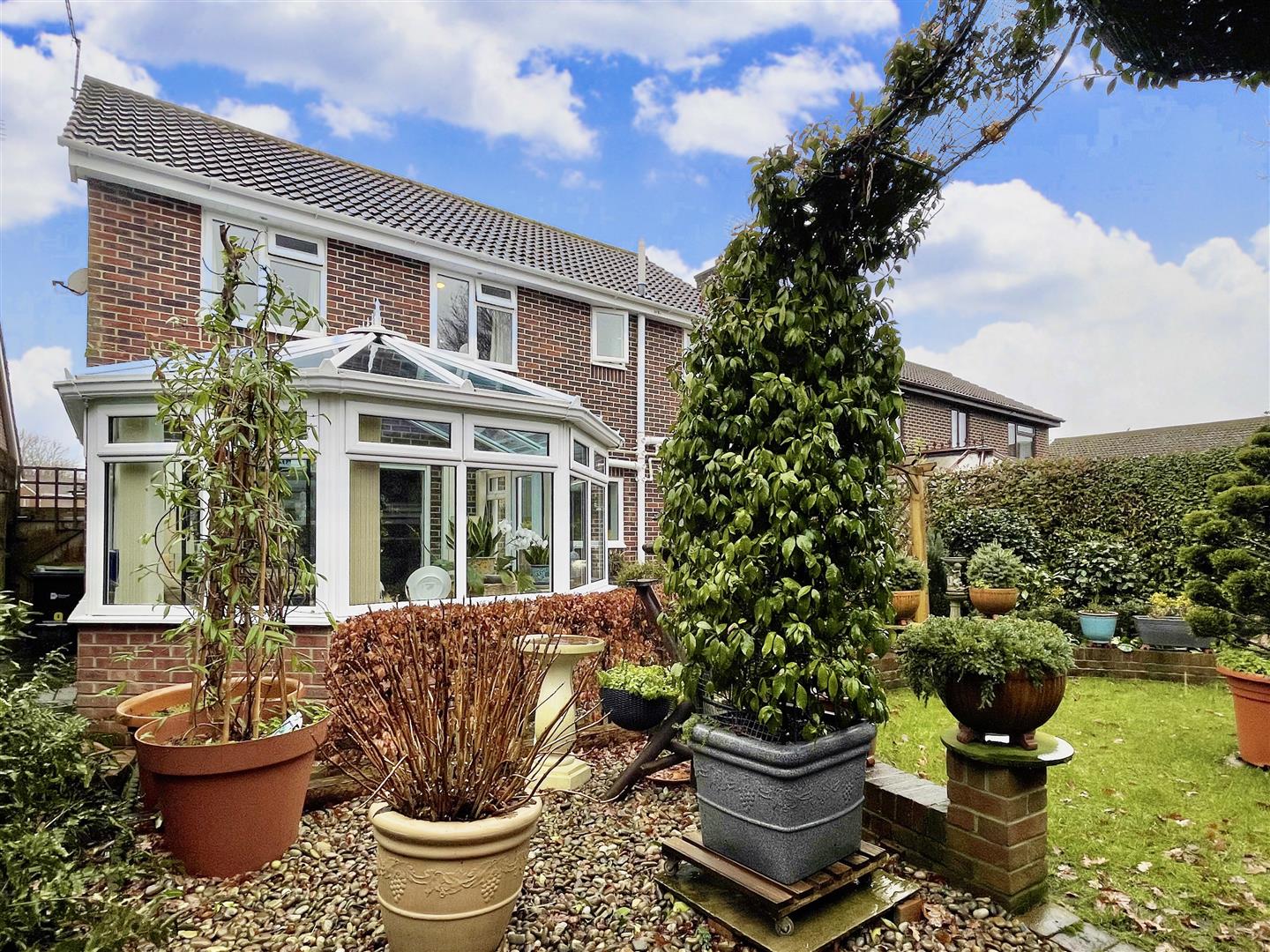 The landscaped rear garden is a private haven, thoughtfully zoned into patio, lawn, and floral areas—perfect for al fresco dining and family play. To the front, the property offers a manicured garden and private parking, with significant potential to reconfigure the space for up to four additional vehicles or a large motorhome.