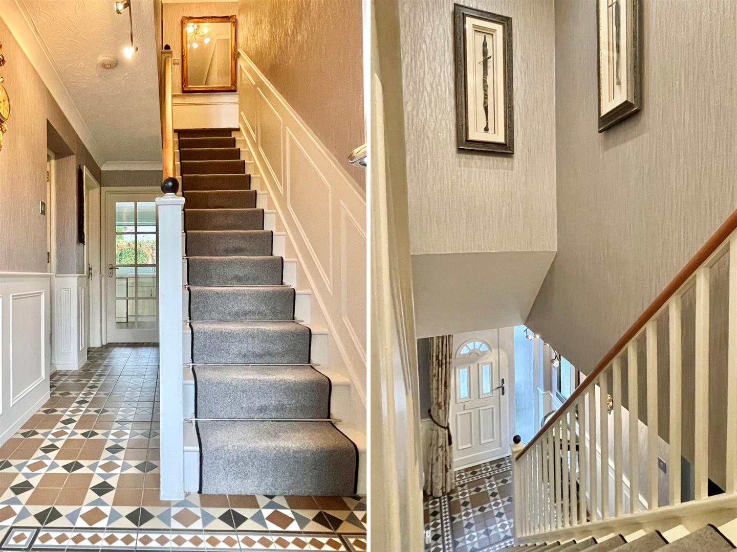 Making a striking first impression, the entrance hallway features beautiful Victorian-style tiling that perfectly complements the contemporary updates found throughout the home. The space is further enhanced by elegant partial wooden wall panelling, adding a touch of classic character and texture. From here, the staircase leads to the first floor, while internal doors provide seamless access to the kitchen, the integrated garage, and the main reception room, establishing the home’s excellent sense of flow from the moment you step inside.
