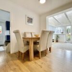 Rear-aspect dining room opening into the sunroom. Fitted with base-level units and matching worktops to complement the kitchen, with shelving above providing additional storage and display space.