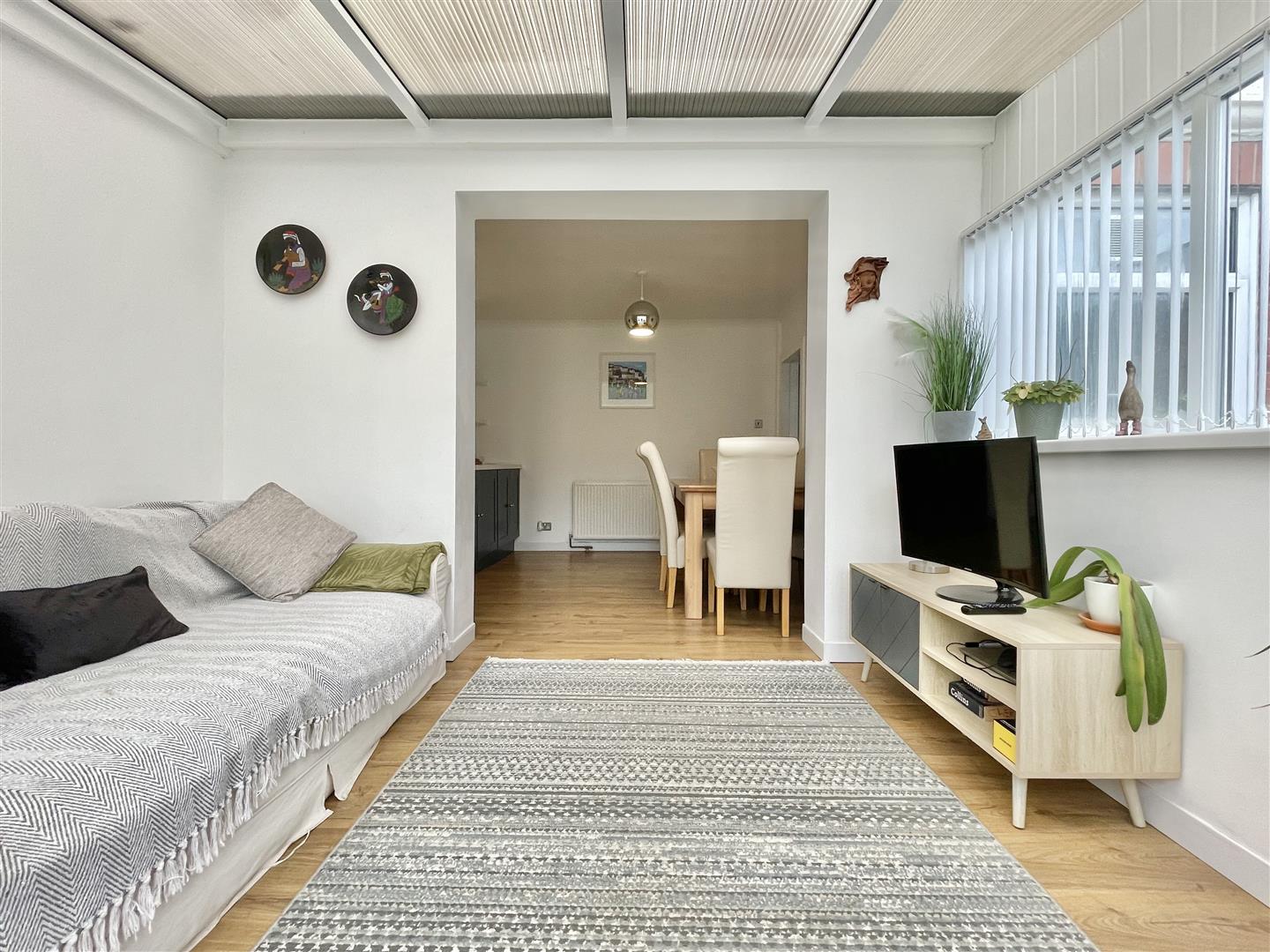 The ground floor comprises a light and welcoming hallway, a front-aspect lounge with a large bay window and feature fireplace, a rear dining room opening into a multi-aspect sunroom, and a stylish kitchen with modern units, integrated appliances, and access to the side garden. The generous exterior spaces include; off-road parking, a garage with power and lighting, multiple storage sheds, and an externally accessed W/C, making it ideal for both family living and entertaining.